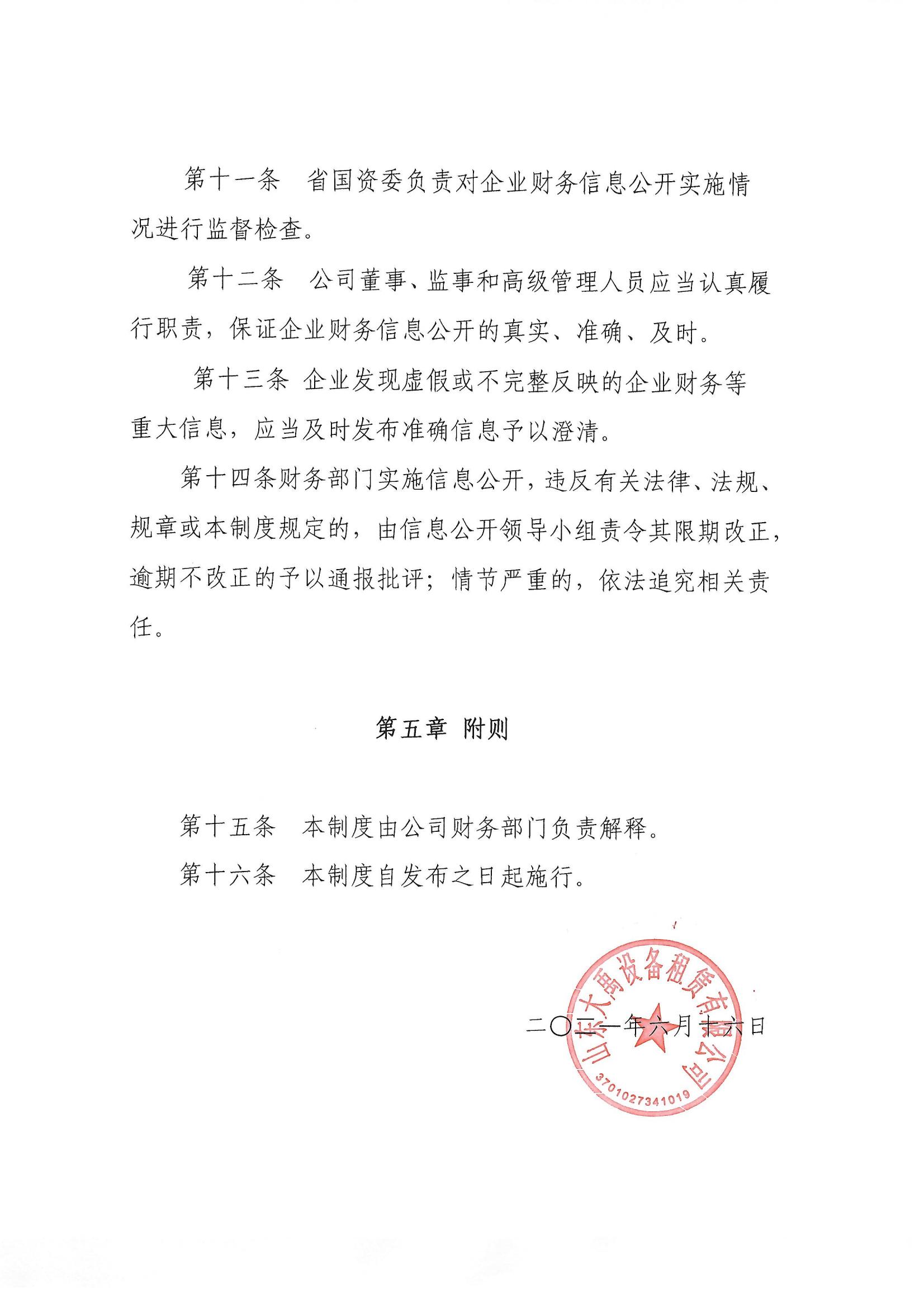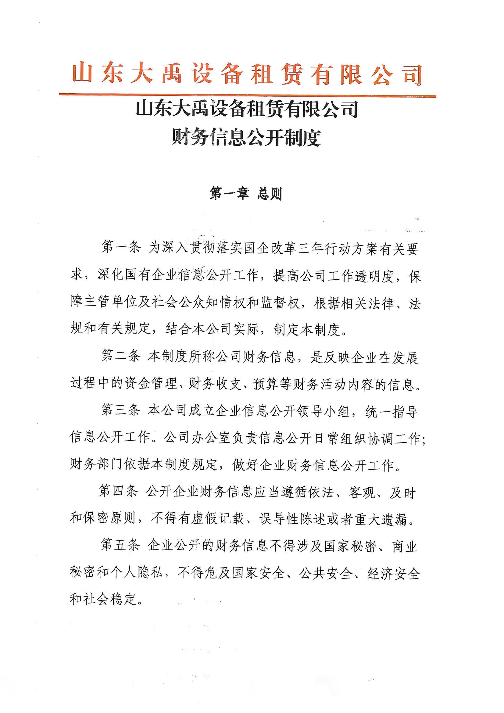 山东诚信至上金字招牌 设备租赁有限公司财务信息公开制度