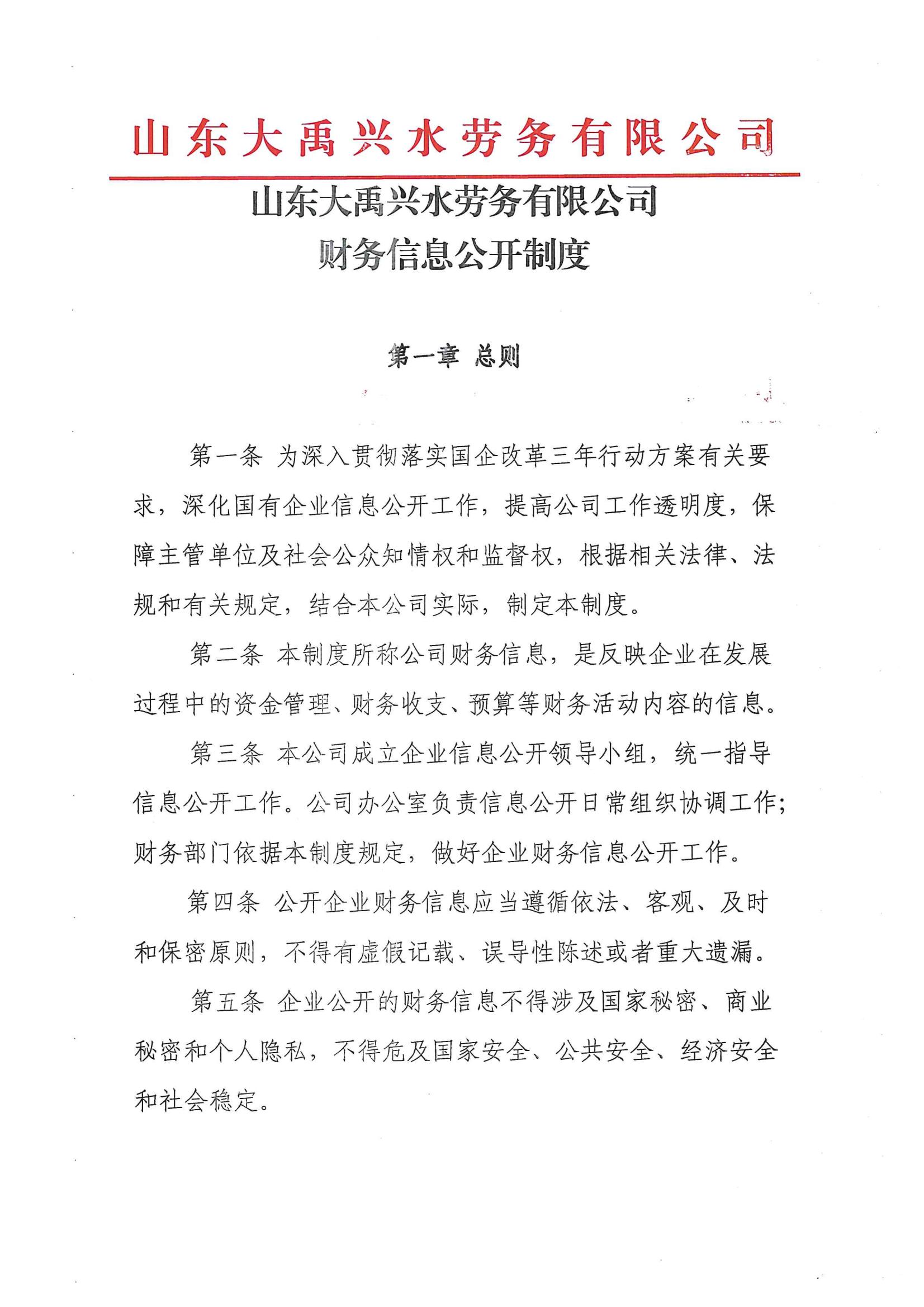 山东诚信至上金字招牌 兴水劳务有限公司财务信息公开制度