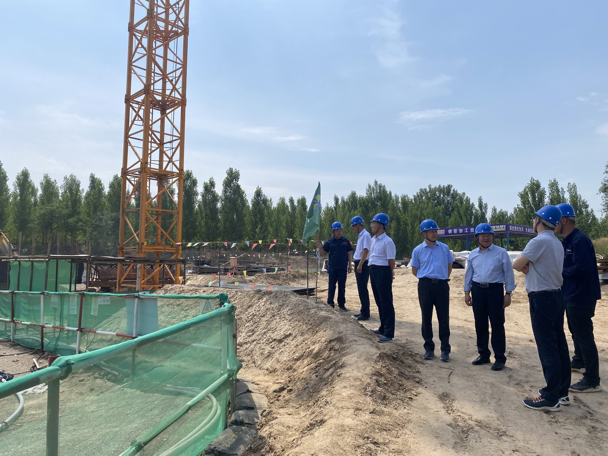 6月16日,山东省水利勘测设计院有限公司副总经理兼安全总监曹先玉、安委会主任吴敬峰一行对济南市鹊山水库除险加固工程安全生产工作进行检查指导,集团公司总经理张玉源、副总经理李国强、安全部副主任倪志刚等陪同。
